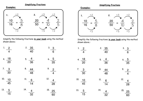 Reducing Fractions Worksheets | Printable Free Online PDFs Reducing Fractions Worksheets give students a platform to access numerous questions that are well structured. As these worksheets have an increasing level of difficulty, they are easy to work with, and students can strengthen their concepts. Students need to study according to their learning curve, and these worksheets are flexible enough to allow young minds to work at their own pace. Math Worksheets: Reducing Fractions: Reducing Fractions ... Reducing Fractions 1 Simplest Form: Worksheets for reducing fractions to simplest form starting with commonly used denominators (fractions only, no mixed numbers). Resource Type: Worksheet: US Grade Level: 4th Grade, 5th Grade, 6th Grade: Age Range: 9-12 Simplifying Fractions Worksheets - Math Worksheets 4 Kids Simplifying Fractions Worksheets. Take the edge off simplifying fractions with printable worksheets for 4th grade, 5th grade, and 6th grade! Cultivate a clear understanding of the topic with exercises on simplification of fractions using models; finding the simplest form of fractions using GCF; and simplifying proper fractions, improper fractions, and mixed numbers.